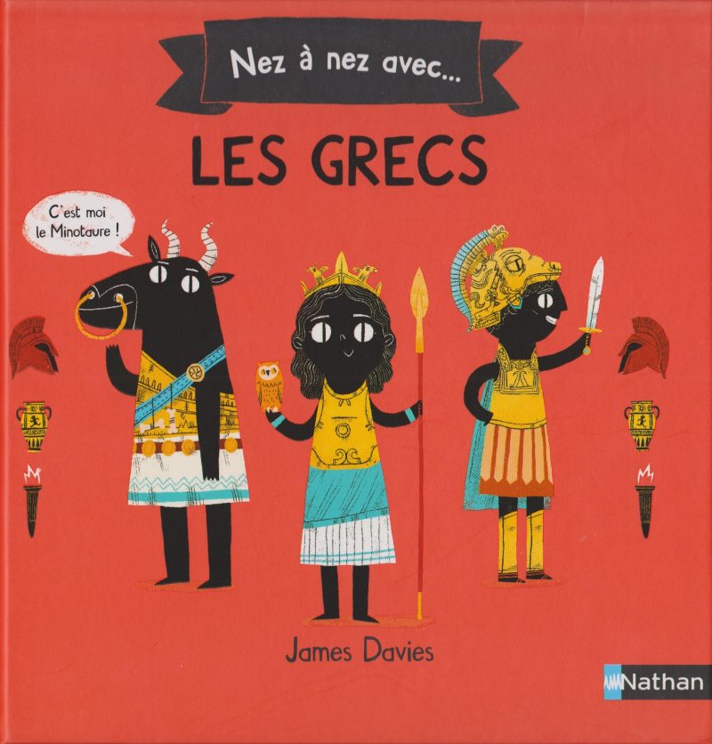 Aujourd’hui, c’est le grand jour pour le livre « Nez à Nez avec les Grecs » qui rejoint ses deux grands frères (les Romains et les Égyptiens) dans les rayons des librairies et magasins. J’ai eu la chance de traduire cette nouvelle collection de l’auteur et illustrateur britannique James Davies, publiée par les éditions Nathan, qui s’adresse aux enfants de 6 à 9 ans (même si les adultes prennent également un grand plaisir à les lire, je vous le garantis !). J’avoue que j’ai eu un gros coup de cœur pour cette collection très bien pensée. Pourquoi ? Parce qu’elle explique de manière très simple l’histoire des grandes civilisations, avec une grande touche d’humour et des illustrations très colorées. On retient facilement les informations qui abordent de nombreux thèmes, tels que la vie quotidienne, les grandes inventions, les divertissements, l’éducation, les personnages célèbres, la vie de famille, les croyances etc. Pour l’instant, l’auteur a choisi de parler des Romains, des Égyptiens et des Grecs. C’est vraiment chouette pour faire découvrir de grands peuples à vos enfants/neveux/petits-enfants. J’ai personnellement hâte de découvrir quels seront les prochains ouvrages !